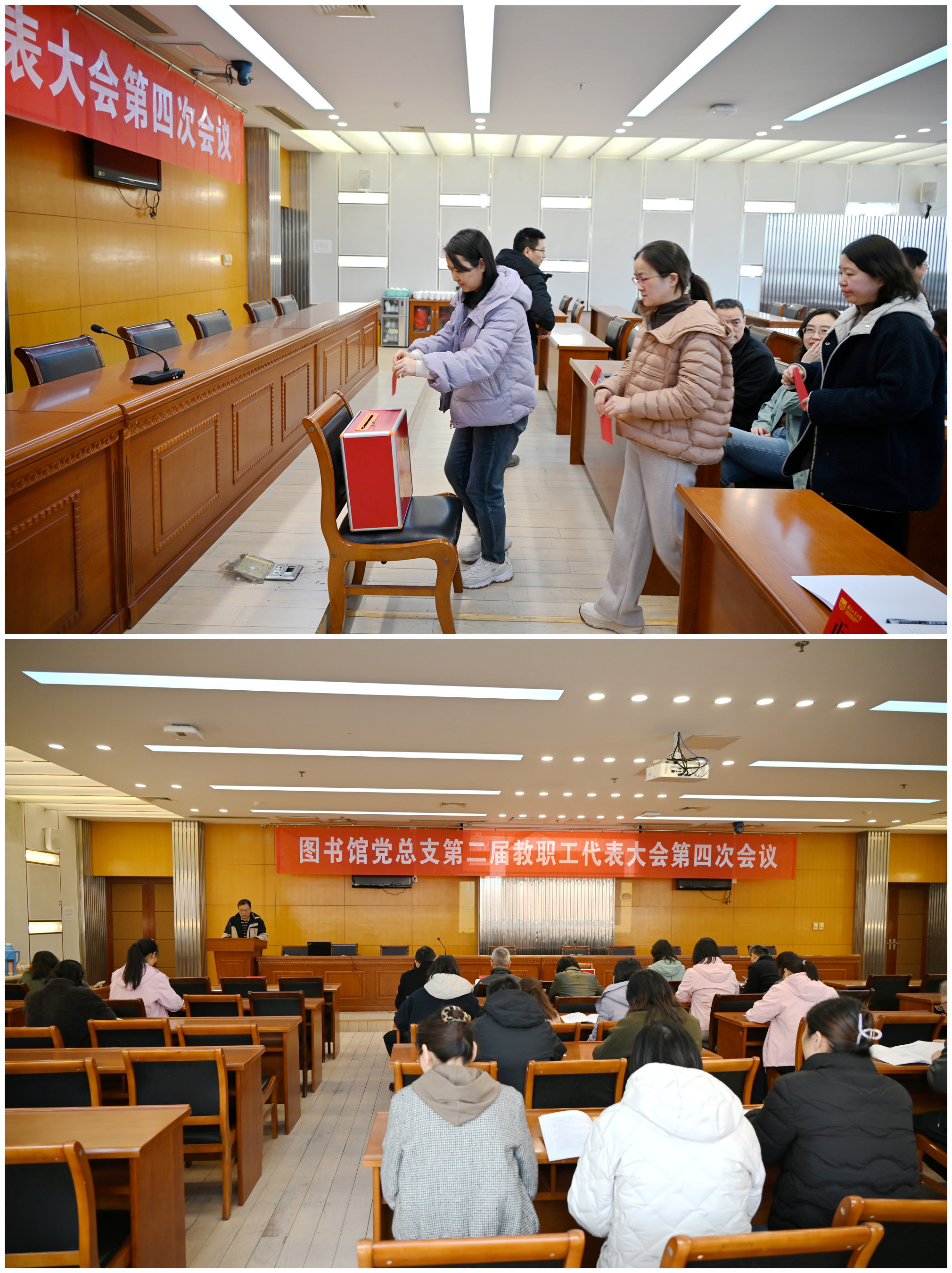 12月10日上午,图书馆党总支第二届教职工代表大会第四次会议在逸夫图书馆五楼报告厅召开。25名正式代表与7名列席代表出席会议,会议由党总支书记孙宇主持。